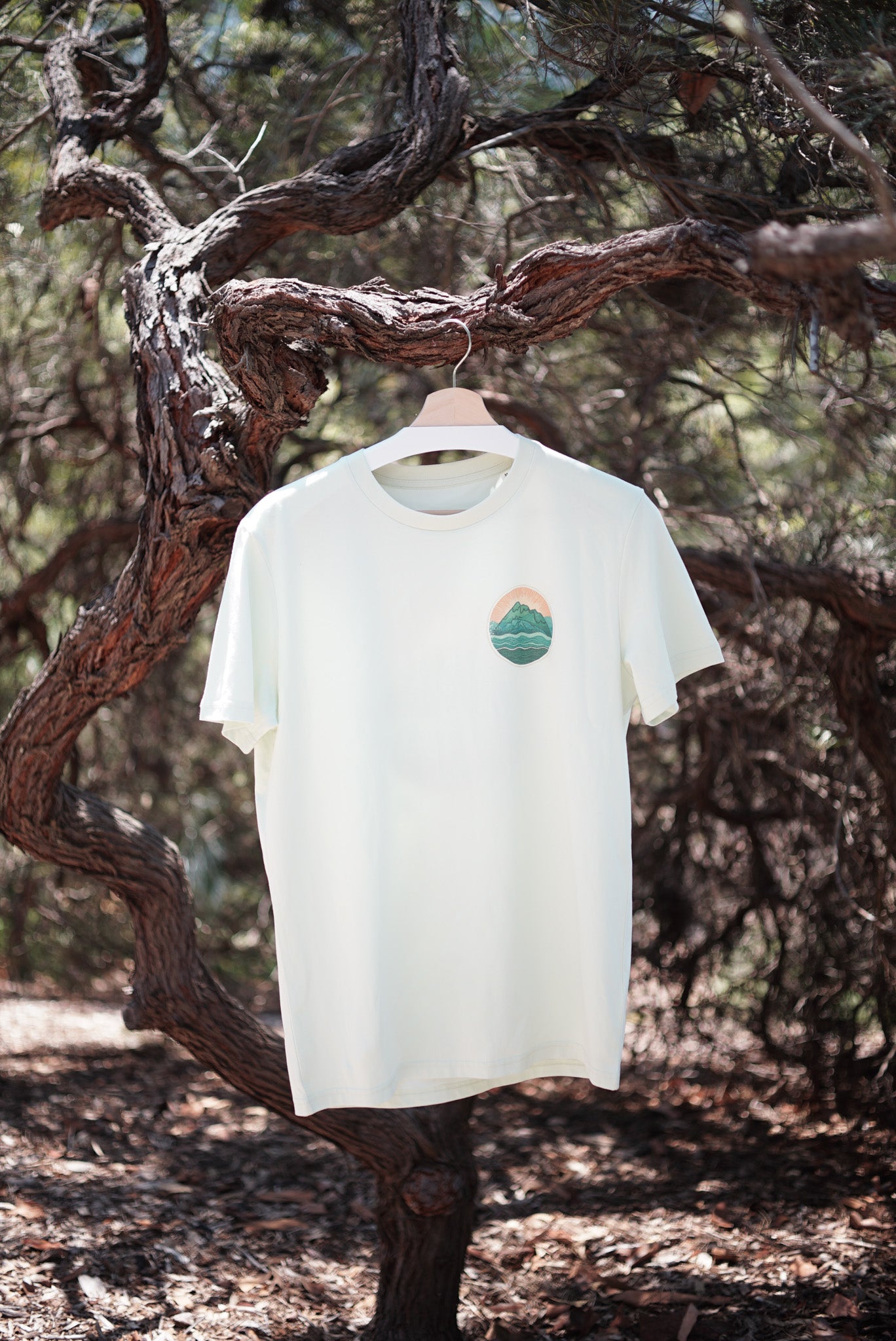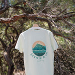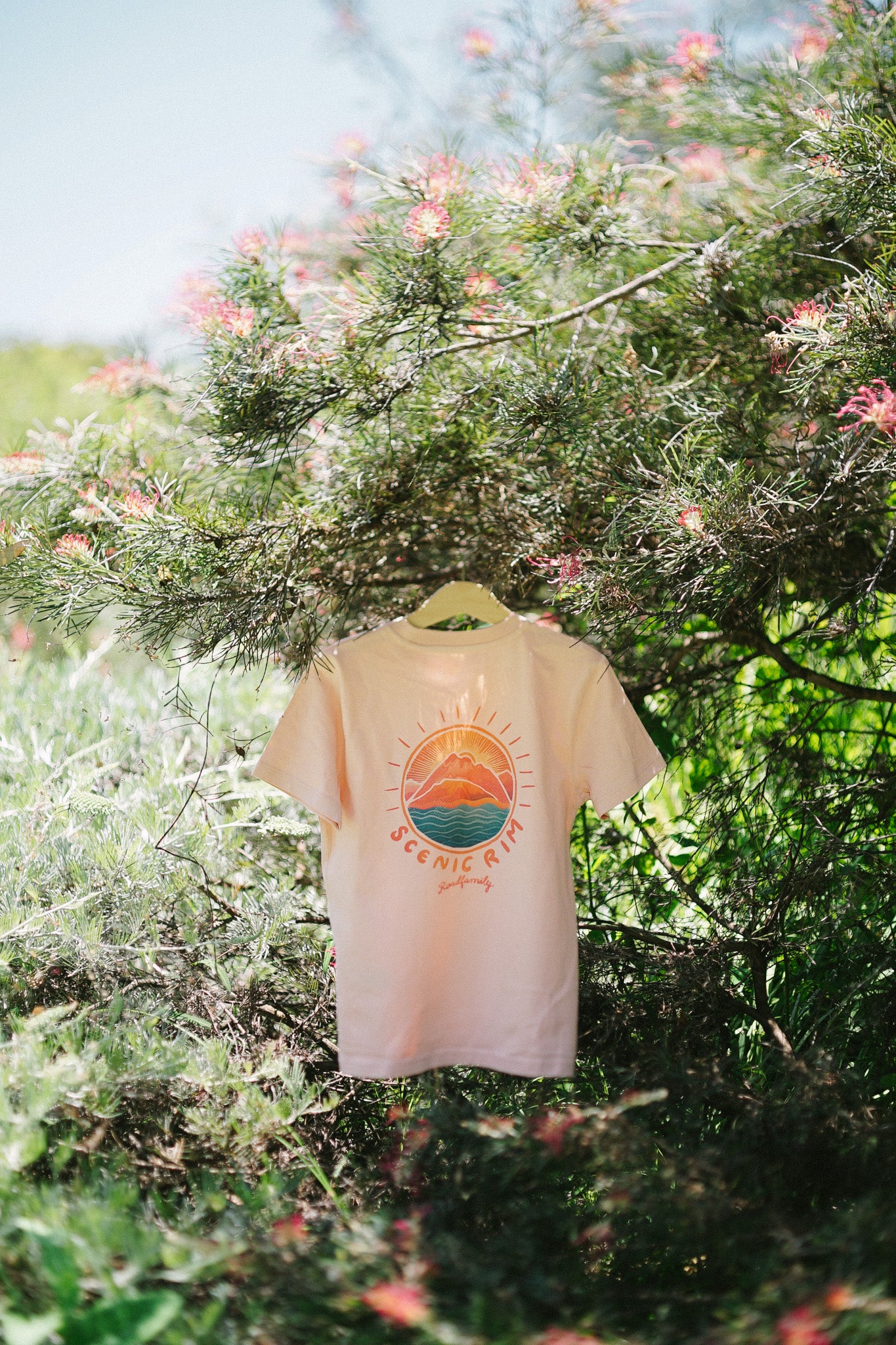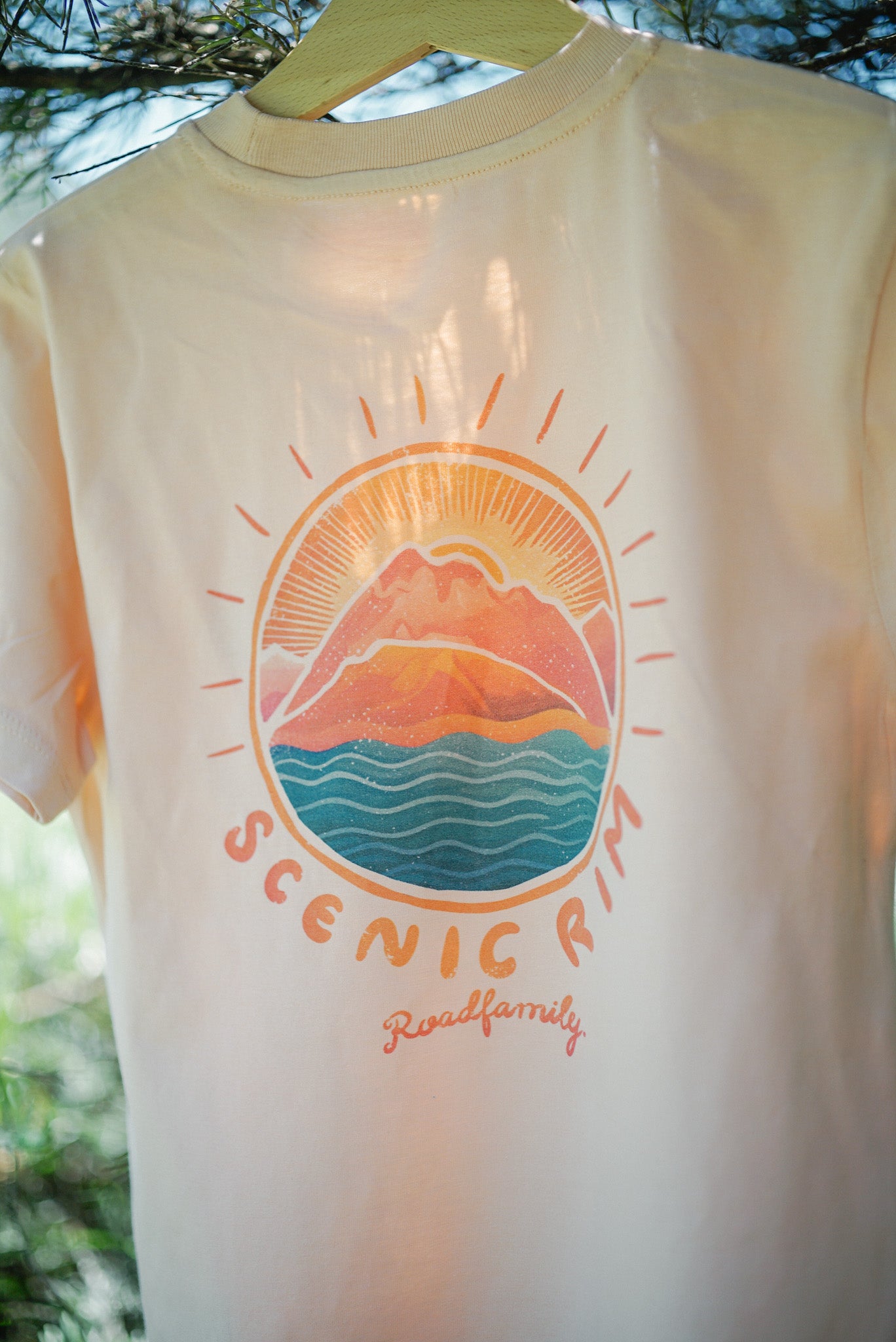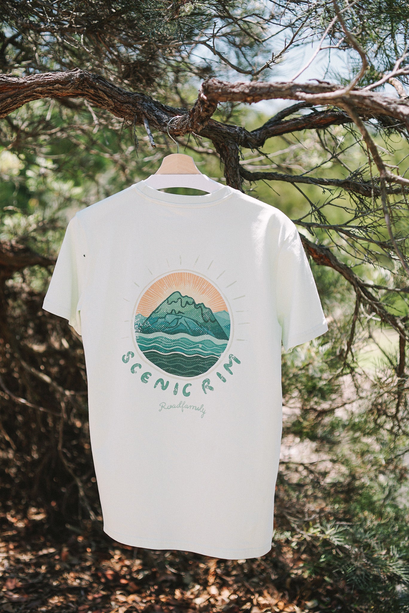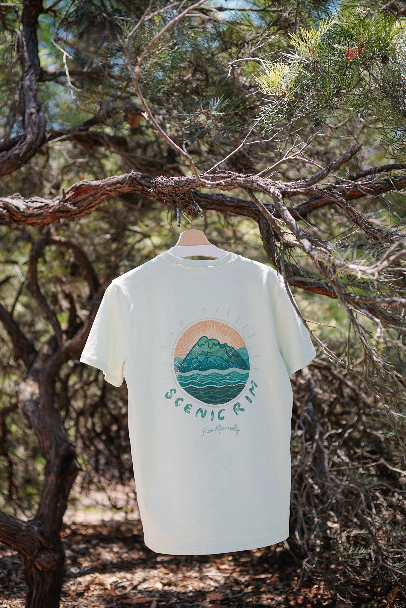 The sunrise version of our Scenic Rim tee. Inspired by the silhouette of Mt Barney and Mt Maroon and the serene waves of Lake Maroon. These rugged peaks have a magnetic pull, drawing in climbers and adventurers from all around and are an awe-inspiring place to experience a sunrise.